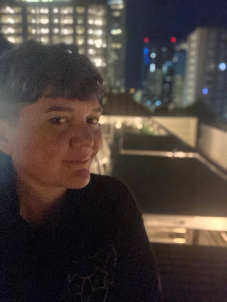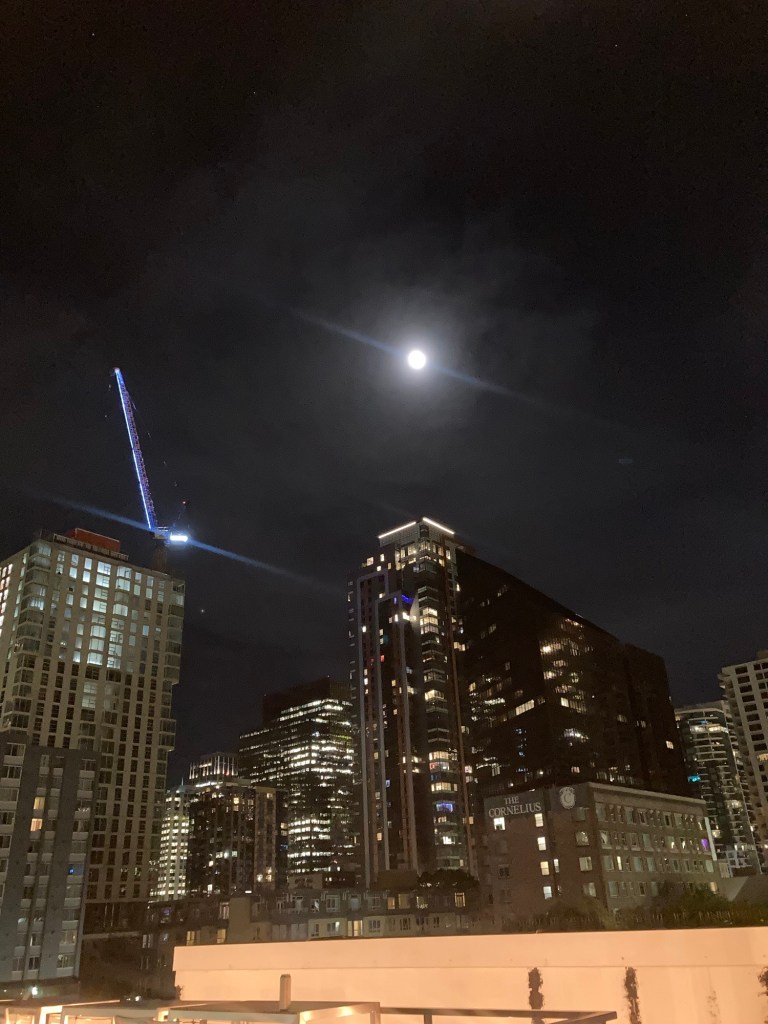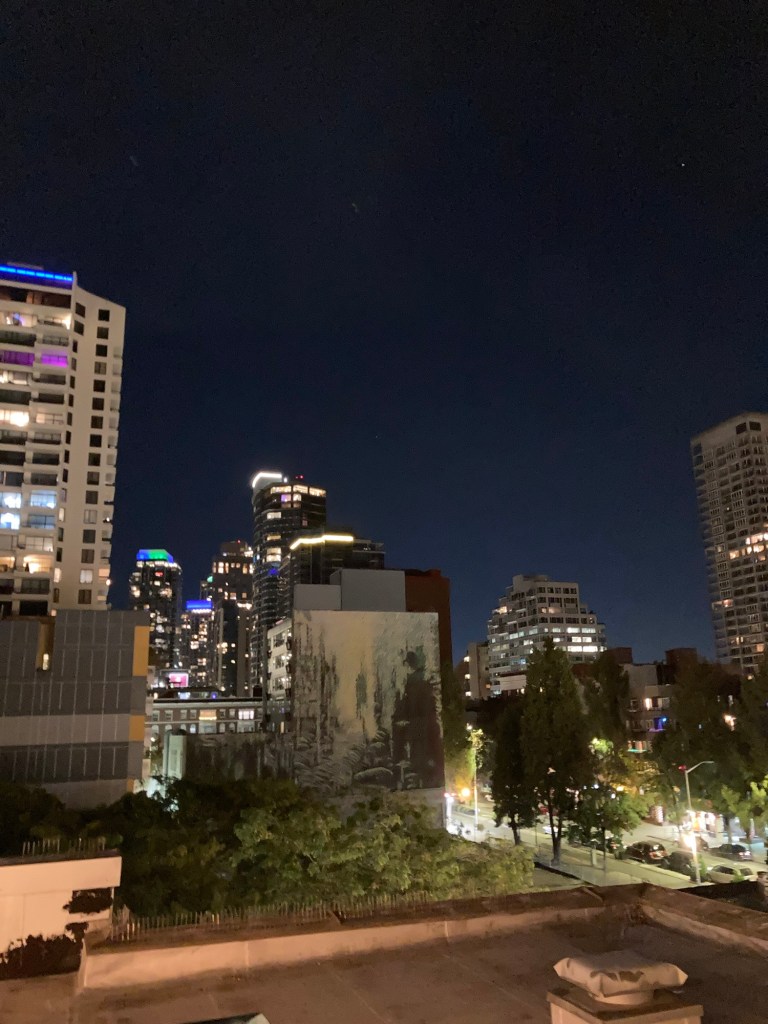 i ended saturday night on the rooftop of the hotel watching the moon shift slowly across the blue-black sky. the neighborhood was relatively quiet and i had the space to myself for several blissful hours.