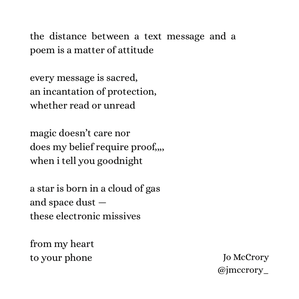 the distance between a text message and a poem is a matter of attitude